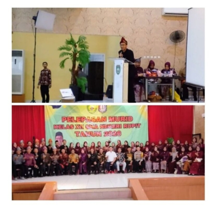 Mabesnews.com, Muratara – Kegiatan pelepasan siswa-siswi SMA negeri Rupit, kelas XII tahun ajaran 2026 dari 319 Siswa, di adakan di Aula Siti Rahmah, kelurahan Rupit, kec Rupit, kab Muratara Sum Sel, Sabtu 18/04/2026, Yg di awali berbagi seni budaya dari sekolah dan berjalan dg khidmat, Kegiatan pelepasan tersebut di hadiri langsung dari pengawas SMA/SMK propinsi Sumatera Selatan, ketua komite sekolah, unsur kepolisian toko masyarakat serta para wali murid yang hadir, turut memberikan doa’ serta dukungan kepada para siswa/siswi yg telah lulusan, Kepala sekolah SMA negeri Rupit Muhammad Arif MPD dalam sambutannya menyampaikan pesan-pesan yang menyentuh khususnya pada siswa yg mengikuti acara pelepasan,ia menegaskan bahwa momen perpisahan ini bukanlah akhir, melainkan awal dari menuju masa depan untuk meraih cita-cita mu sesuai apa yg di cita cita kan, Lanjut Arif, selama tiga tahun bersama tentunya ada ke kurangn dan keikhlafan dalam proses belajar mengajar.