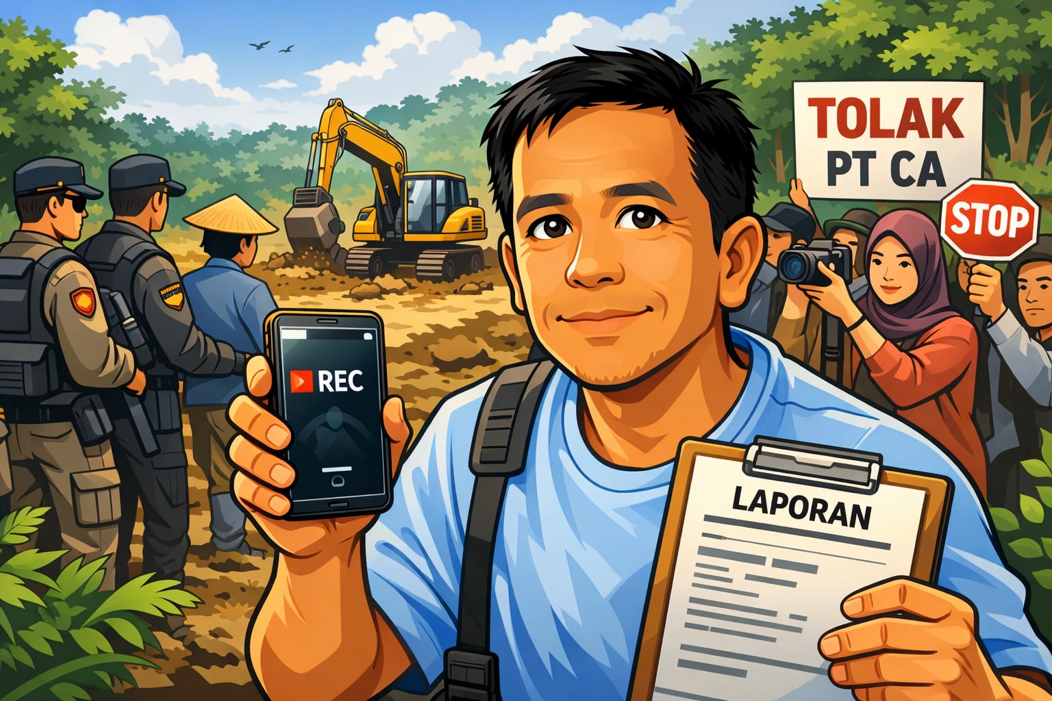 Juru Bicara Aliansi Masyarakat Tolak PT CA, Khairul Amri, menegaskan bahwa keberanian warga dalam mengumpulkan bukti menjadi kunci penting dalam memastikan supremasi hukum ditegakkan. Ia meminta masyarakat merekam, memfoto, serta mencatat setiap aktivitas PT CA yang diduga melanggar hukum.