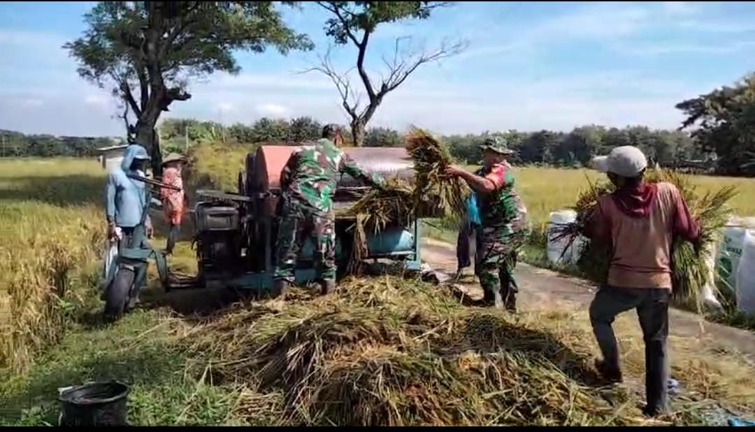 Bersama para petani, Serma Budi bahu-membahu melakukan panen padi di lahan seluas satu hektar milik Bp, Amin. Kegiatan panen dilakukan dengan penuh semangat gotong royong, menunjukkan sinergi yang kuat antara TNI dan masyarakat.