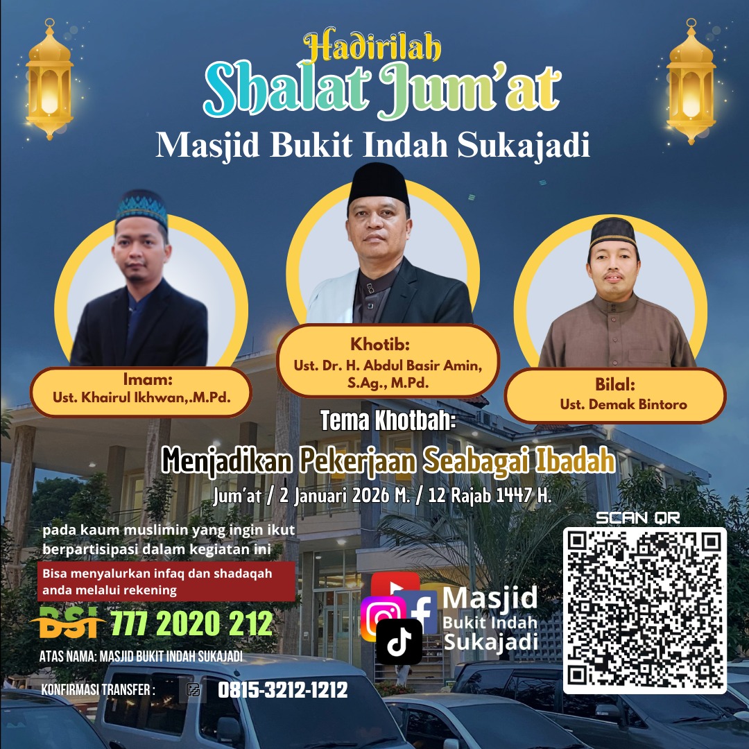 Secara keseluruhan, pesan Jumat di Masjid Bukit Indah Sukajadi mengajak umat Islam untuk menyatukan iman, amal, dan profesi dalam satu tarikan napas pengabdian. Ketika pekerjaan dijalani dengan niat ibadah dan akhlak mulia, maka lahirlah pribadi-pribadi yang tidak hanya produktif secara ekonomi, tetapi juga memberi manfaat dan keteladanan bagi masyarakat luas.(Nursalim Turatea).