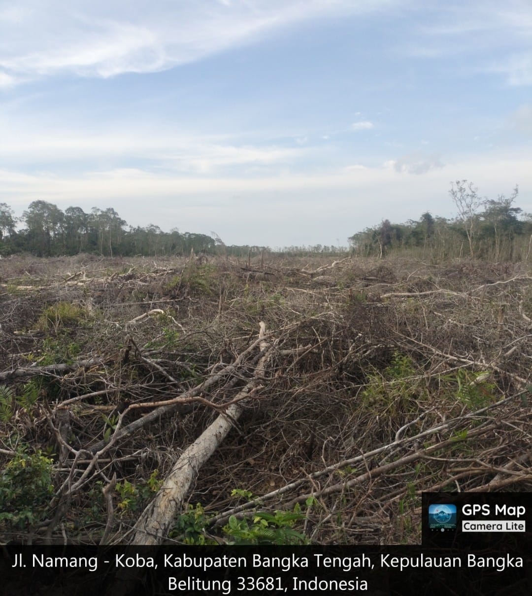 ​Berdasarkan informasi yang dihimpun, lahan seluas kurang lebih 25 hektar di titik koordinat Lat-2.32044º Long 106.220455º telah luluh lantak.