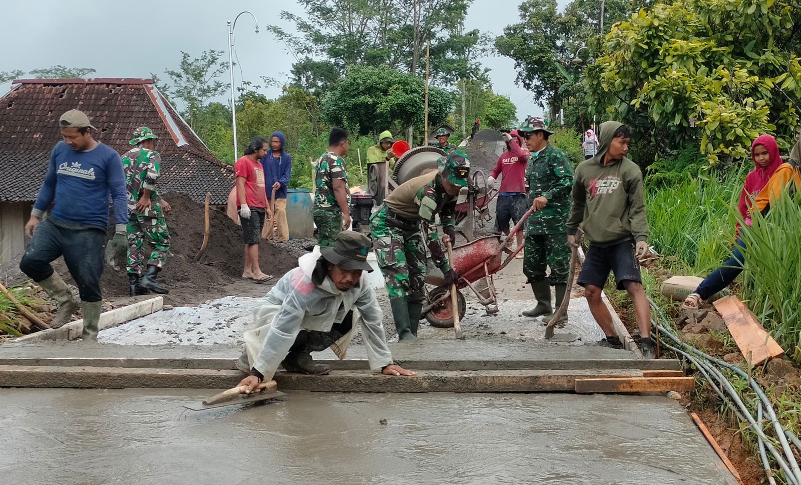 RadarKriminal.Newsz.id, Wonogiri, Sabtu, 7/2/2026, Wonogiri – Kemanunggalan prajurit TNI dari Kodim 0728/Wonogiri bersama masyarakat Desa Kembang Kecamatan Jatipurno, dengan penuh semangat tanpa menghiraukan teriknya panas maupun hujan patut diapresiasi.