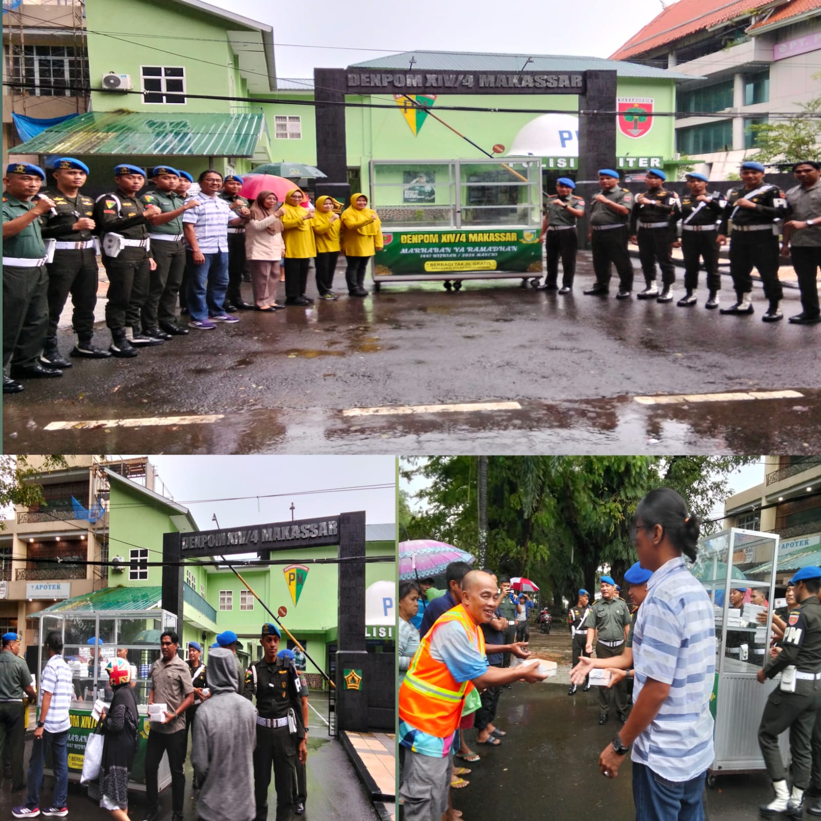 Kegiatan yang dilaksanakan di depan Markas Denpom XIV/4 Makassar yang melibatkan Personel Detasemen Polisi Militer XIV/4 Makassar dan Persit KCK anak ranting 4) yang dipimpin langsung oleh Mayor Cpm Ari Siam Yotefa, S.H., (Wadandenpom XIV/4 Makassar), meski diguyur hujan saat kegiatan pembagian takjil berlangsung, semangat para prajurit dan warga untuk berbagi tidak surut. Mereka tampak kompak dan penuh kehangatan saat membagikan paket takjil kepada para pengendara dan masyarakat yang melintas.