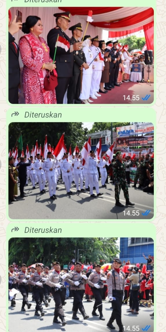 Usai pelaksanaan upacara, kegiatan dilanjutkan dengan devile pasukan dan peserta upacara. Kapolres Labuhanbatu bersama Forkopimda Labuhanbatu tampak mengikuti devile dengan penuh semangat, menyapa masyarakat yang hadir serta memberikan teladan semangat kebersamaan dan persatuan di momentum peringatan kemerdekaan ini.