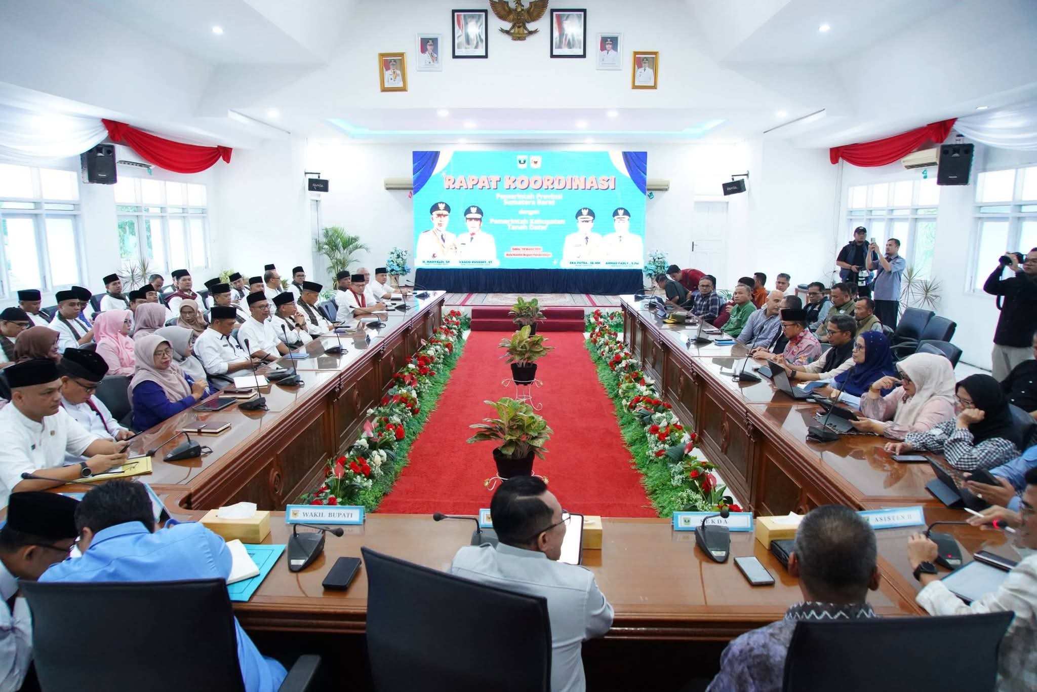 Tanah Datar, MABESNEWS.COM- Dalam rangka memperkuat sinkronisasi antara pemerintah provinsi dan pemerintah daerah, Pemerintah Kabupaten Tanah Datar menggelar Rapat Koordinasi dengan Pemerintah Provinsi Sumatera Barat Tahun 2026 di Aula Kantor Bupati Pagaruyung, Sabtu (14/3/2026).
