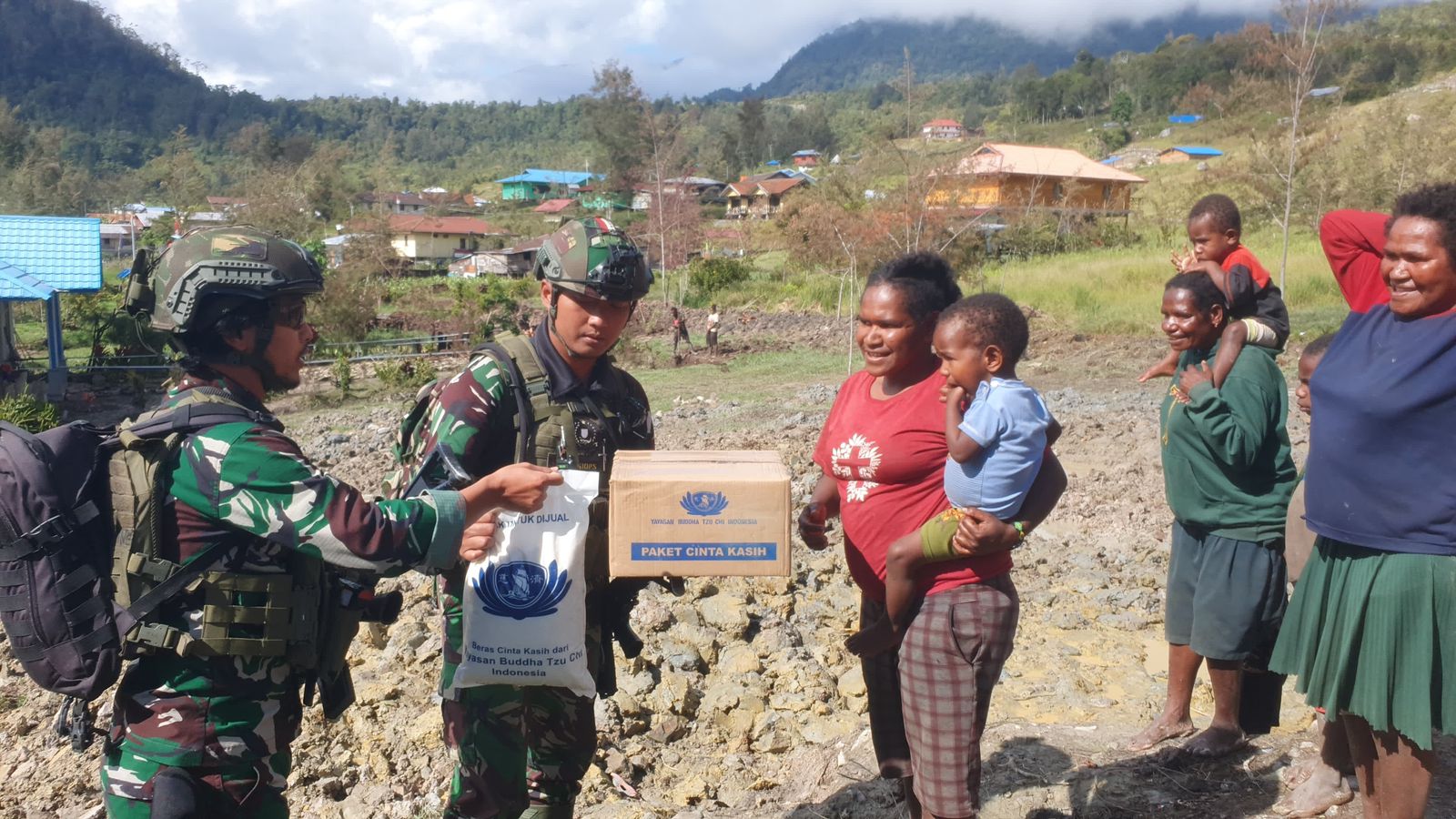 By prioritizing security during activities, harmonious interactions between TNI Soldiers and residents have resulted in a close relationship between the two parties. To increase familiarity, the Soldiers distributed packages of basic necessities needed by the residents of Gigobak Village. The community members were very enthusiastic about welcoming the presence and help from the 323 Task Forces. One of them, Mama Eli Wanimbo, expressed her impression: “Praise God, thank you, Commander 323. God bless.”