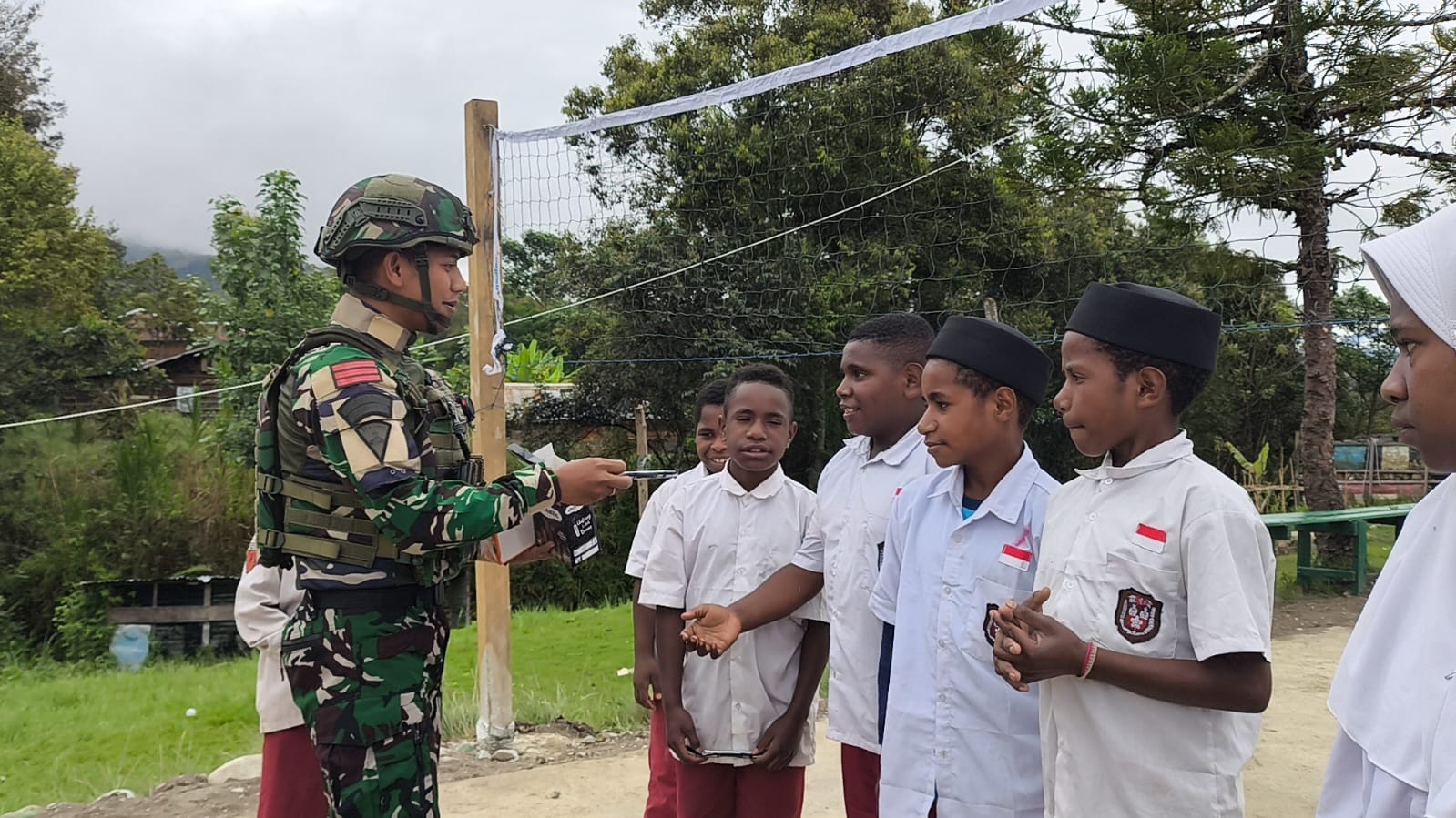 Menunjukkan kepedulian TNI terhadap kebugaran masyarakat lokal, Satgas Yonif 521/DY termasuk memberikan bantuan sarana olahraga karena minimnya fasilitas olahraga bagi masyarakat dan anggota Satgas di Distrik Walesi, Jayawijaya, Papua Pegunungan (28/10/2025)