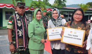 Menunjukkan kepedulian TNI terhadap kebugaran masyarakat lokal, dengan Kegiatan Binter terbatas melalui bagikan sarana olahraga.