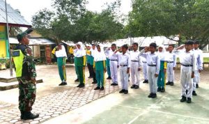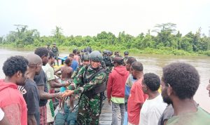 Hari Sumpah Pemuda Satgas Yonif 521/DY Bagikan Net dan Bola Volly di Distrik Walesi