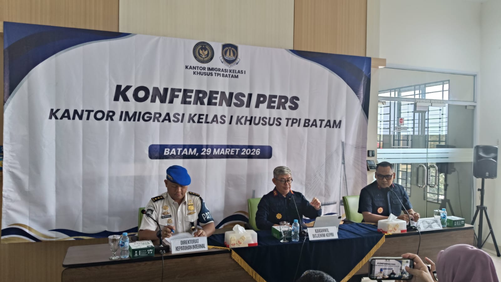 Klarifikasi tersebut disampaikan melalui konferensi pers yang bertempat di Pelabuhan Batu Ampar oleh Kepala Kantor Wilayah Direktorat Jenderal Imigrasi Kepulauan Riau, Ujo Sujoto, Kepala Kantor Imigrasi Kelas I Khusus TPI Batam, Hajar Aswad bersama tim Direktorat Kepatuhan Internal Direktorat Jenderal Imigrasi.