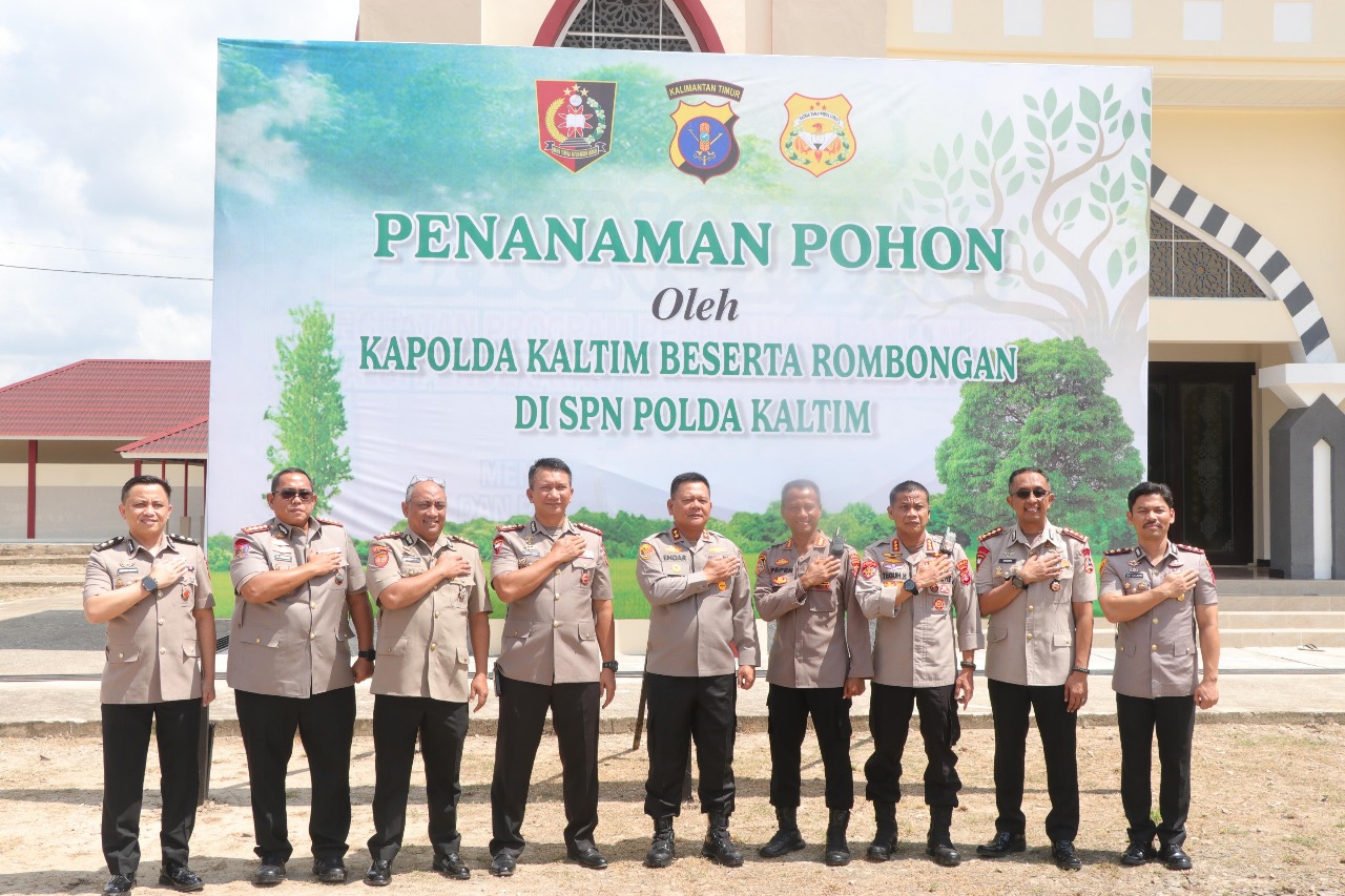Usai pelaksanaan upacara, kegiatan dilanjutkan dengan penanaman pohon secara simbolis oleh Kapolda Kaltim bersama rombongan di lingkungan SPN Polda Kaltim sebagai bentuk komitmen Polri dalam mendukung program pelestarian lingkungan dan pembangunan berkelanjutan.