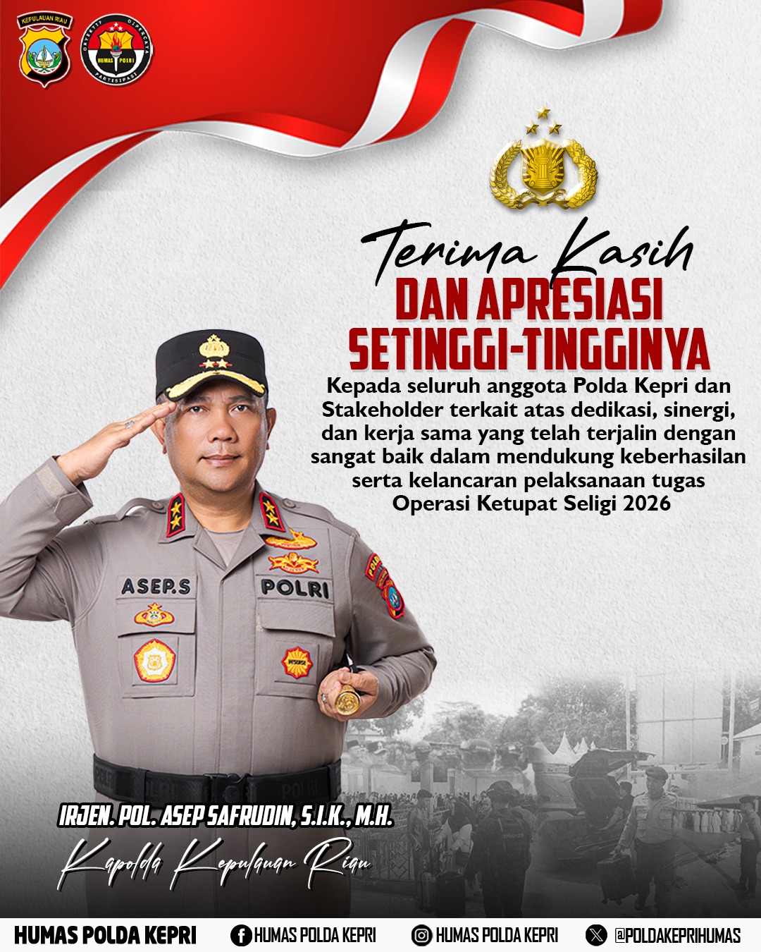 KAPOLDA KEPRI SAMPAIKAN APRESIASI SETINGGI-TINGGINYA DAN TERIMA KASIH ATAS SINERGI SEMUA PIHAK, OPERASI KETUPAT SELIGI 2026 BERAKHIR AMAN DAN KONDUSIF