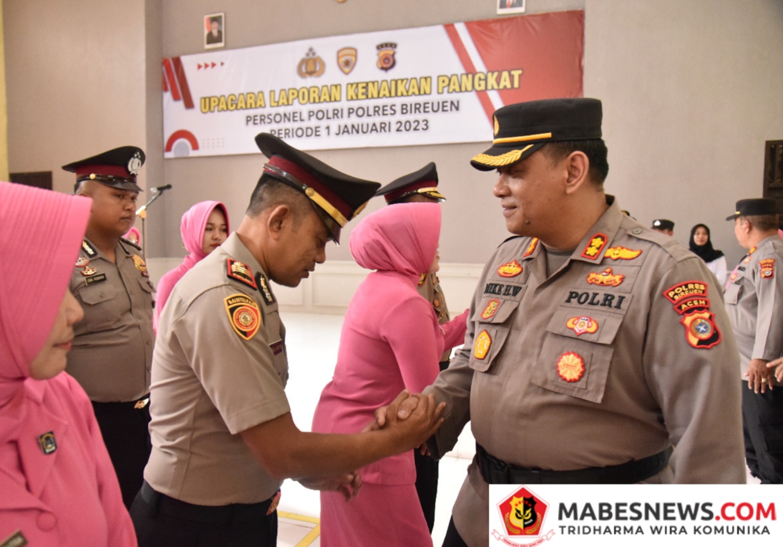 MabesNews.Com |Bireuen, Aceh — Kapolres Bireuen, AKBP Mike Hardy Wirapraja, S.I.K., M.H., memimpin Upcara Korps Raport kenaikan Pangkat Personil.