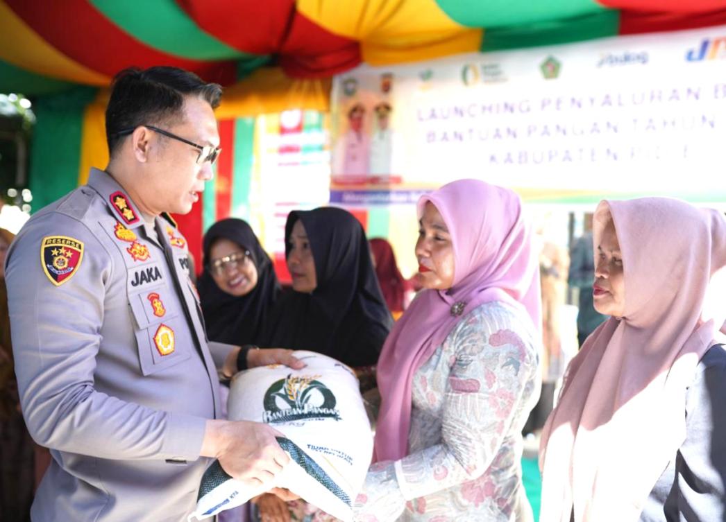 Mabesnews.com. Sigli, Frovinsi Aceh, Kapolres Pidie AKBP Jaka Mulyana, SIK, MIK, menghadiri kegiatan Launching Penyaluran Bantuan Pangan Beras dari Badan Pangan Nasional Republik Indonesia melalui Perum Bulog Kabupaten Pidie, Kamis (24/7/2025).