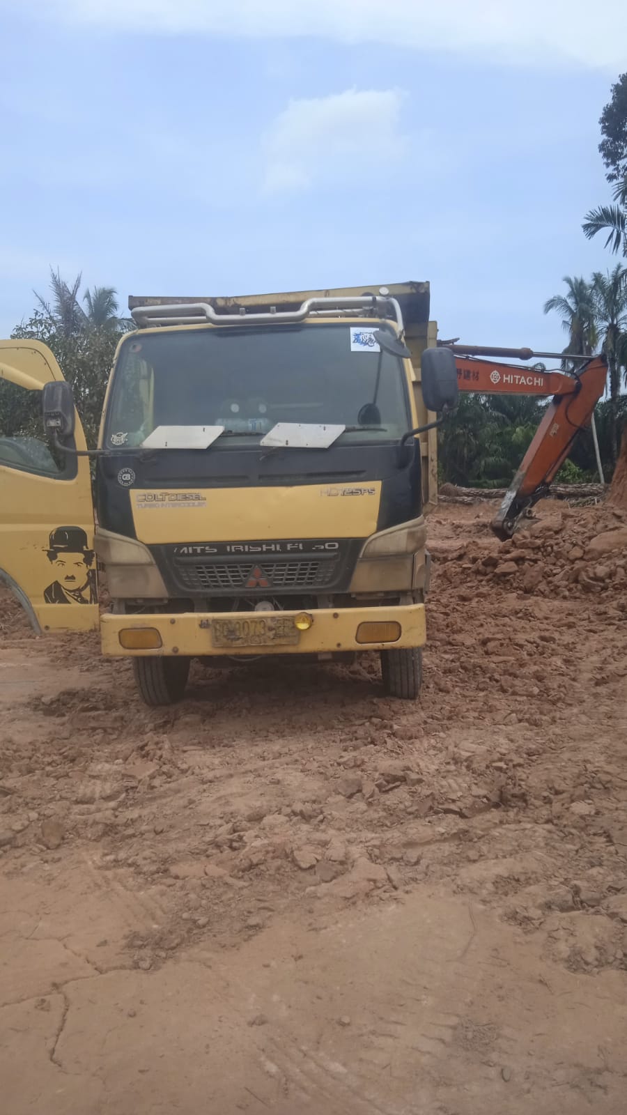 Sebuah mobil dump truk pada antri bergiliran melakukan pengisian tanah urug dengan nomor plat BG 8073 EF yang di isi oleh exscavator,dan ada beberapa oknum sedang melaksanakan pengawasan dan saling transaksi sesuai kesempatan harga yang sudah di tentukan.