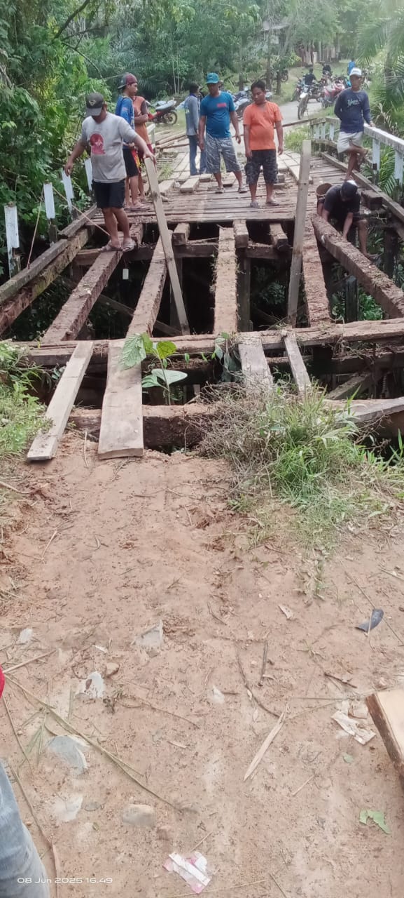 “Sudah lama rusak, sering kami ajukan ke pemerintah, tapi tak ada tindak lanjut. Akhirnya kami iuran,Swadaya Masyarakat daripada menunggu korban jiwa,” ujar salah satu tokoh masyarakat Desa Sungai Pukat yang enggan disebutkan namanya, Senin (09/06/2025).