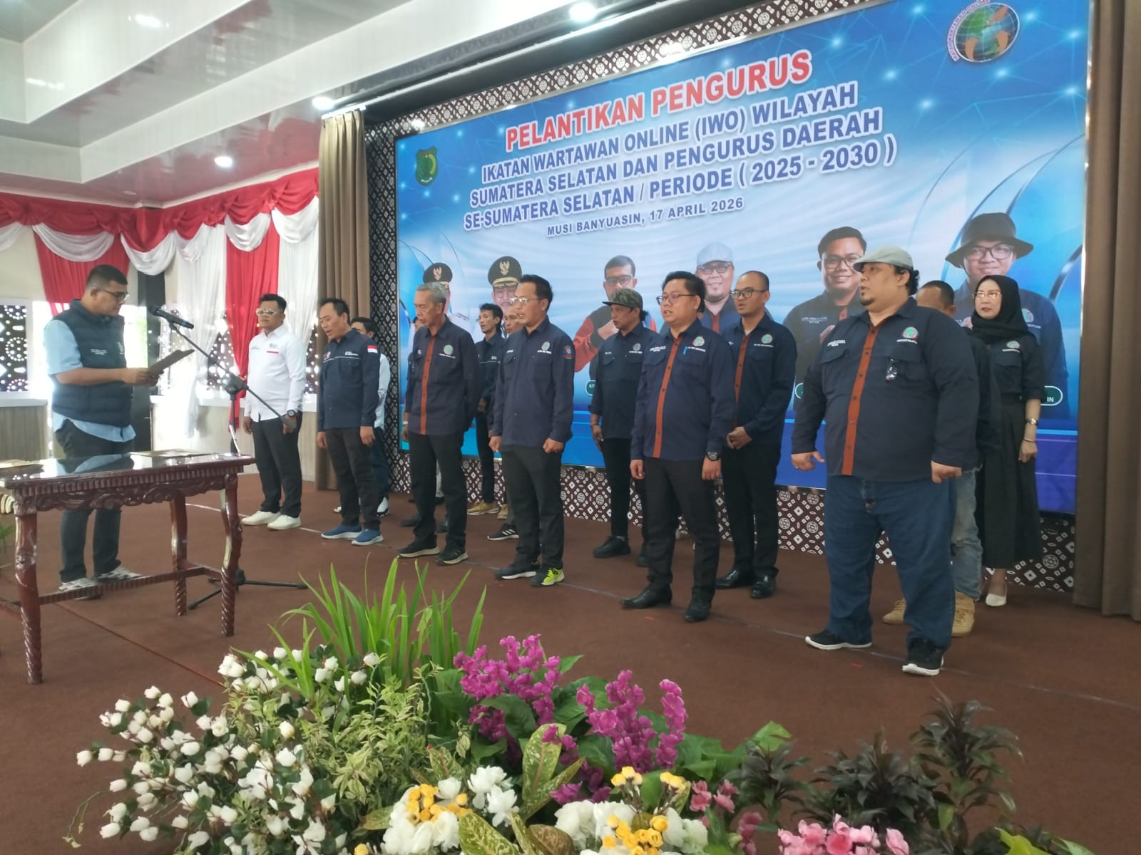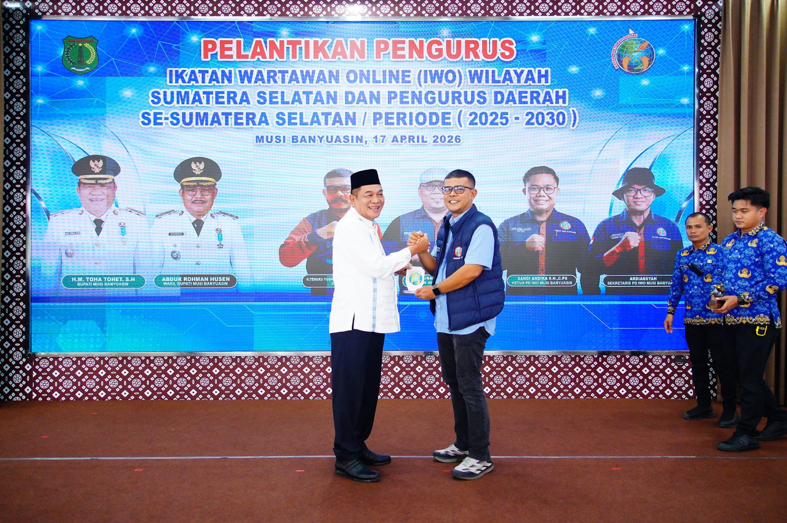 Mabesnews.com, Sekayu 17 April 2026 – Bupati Musi Banyuasin (Muba), HM Toha Tohet, SH, hadir dalam acara pelantikan PW dan PD IWO bersama Ketua Umum PP IWO, H. Teuku Yudhistira Adi Nugraha, M.I.Kom. Kegiatan ini juga didampingi oleh Ketua PW IWO Sumsel, Rainaldy Stanza, AZ, serta dihadiri seluruh ketua PD kabupaten/kota se-Sumatera Selatan beserta jajaran pengurus dan tamu undangan.