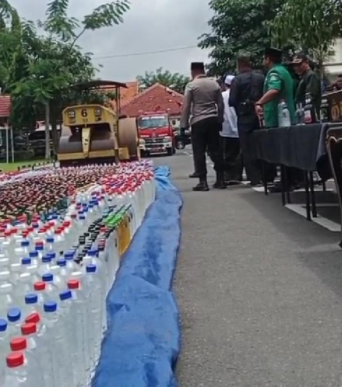 Pemusnahan dipimpin langsung oleh AKBP Ardi Kurniawan dan dihadiri unsur Forkopimda, tokoh agama, tokoh masyarakat, serta perwakilan instansi terkait. Ribuan botol miras yang terdiri dari miras pabrikan maupun oplosan disusun rapi sebelum akhirnya dihancurkan sebagai bentuk komitmen penegakan hukum.