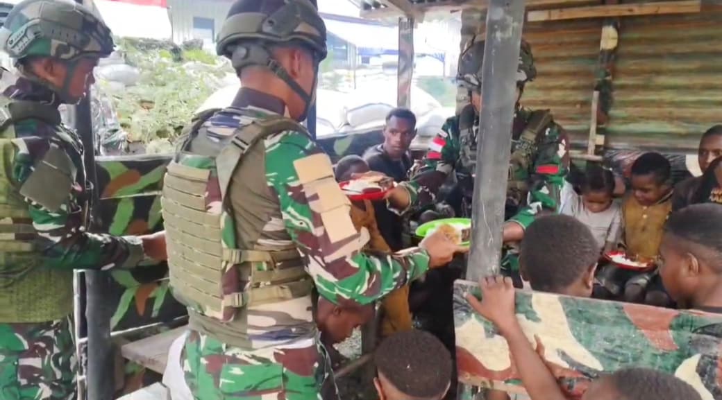 Mabesnews.com,-Yahukimo, –Suasana penuh kehangatan dan kekeluargaan tampak di Pos Kurima Satgas Yonif 521/DY ketika Personel Pos menggelar acara makan bersama dengan anak Papua di Distrik Kurima, Yahukimo, Papua Pegunungan. (2 November 2025).