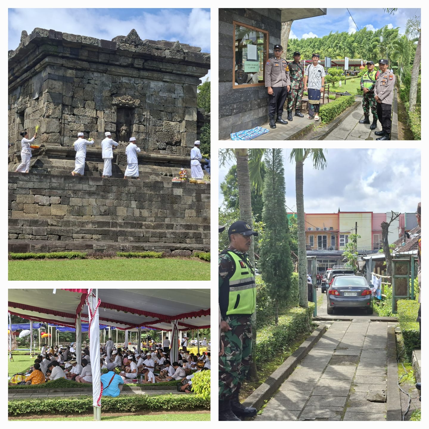 Pengamanan dipimpin Plt. Kapolsek Dau AKP Hari Eko Utomo, S.AP., M.H., dengan tiga personel Polri (Aiptu Bambang Isdianto, Aiptu Al Kisah Marisdana, Bripka Krido Nugroho/Babinkamtibmas Karangwidoro), dibantu Serma Usman (Babinsa Karangwidoro), Sertu Deny (Koramil Dau), dan pecalang dari Wagir. Situasi tetap aman dan terkendali.