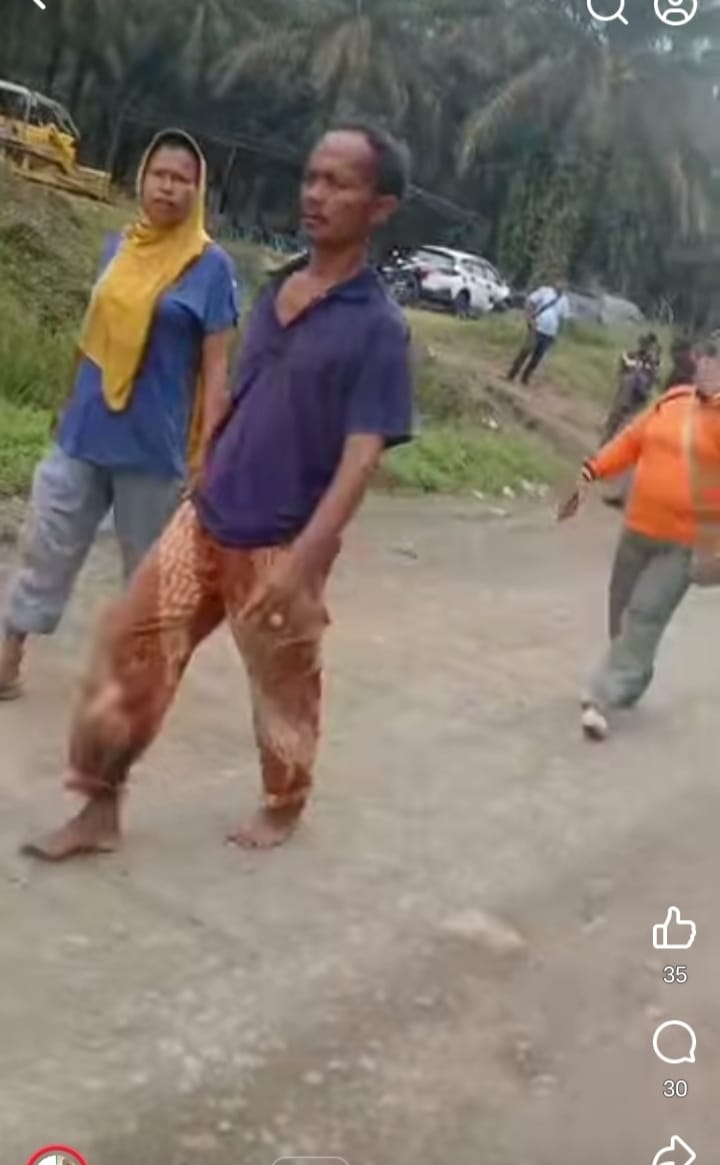 Kami pun awalnya heran bang,lanjutnya menuturkan,” Pasalnya, sudah beberapa hari ini kami bekerja disini, tidak ada hambatan. Namun tiba-tiba sekelompok orang langsung mendatangi kami, sembari memvideokan kegiatan kami, memaksa kami untuk menghentikan kegiatan yang sedang berlangsung,dengan segala trik mereka lakukan untuk menghentikan kegiatan kami, sampai-sampai mereka mendatangi backet excavator ki yang sedang menggali, bahkan mereka duduk di jalan, dimana doser kami sedang melakukan penyekrapan jalan. Mau tak mau,dan dengan terpaksa kami pun menghentikan kegiatan kami.