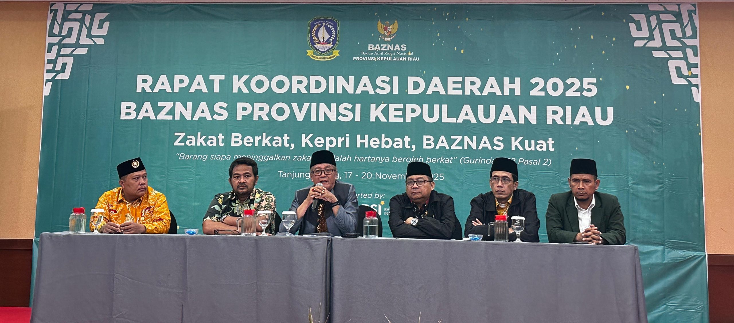 Dengan kolaborasi yang kuat antara pemerintah, masyarakat, dan BAZNAS, semangat “Zakat Berkat, Kepri Hebat, BAZNAS Kuat” diharapkan dapat dirasakan oleh seluruh masyarakat Kepulauan Riau.Badan Amil Zakat Nasional (Baznas) Provinsi Kepulauan Riau menggelar Rapat Koordinasi Daerah 2025 dengan tema “Zakat Berkat, Kepri Hebat, Baznas Kuat” pada hari ini di Trans Convention Center Hotel Aston Tanjungpinang, Senin (17/11/2025).