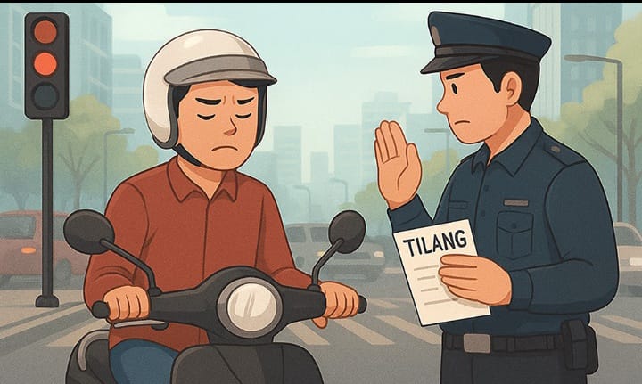 Namun, beberapa detik kemudian, kejadian yang tidak pernah saya bayangkan terjadi. Seorang polisi lalu lintas yang berjaga di persimpangan itu mendekat sambil meniup peluit. Ia memberi isyarat agar saya menepi. Saya sempat terkejut dan bingung, karena saya tidak merasa melakukan kesalahan apa pun.