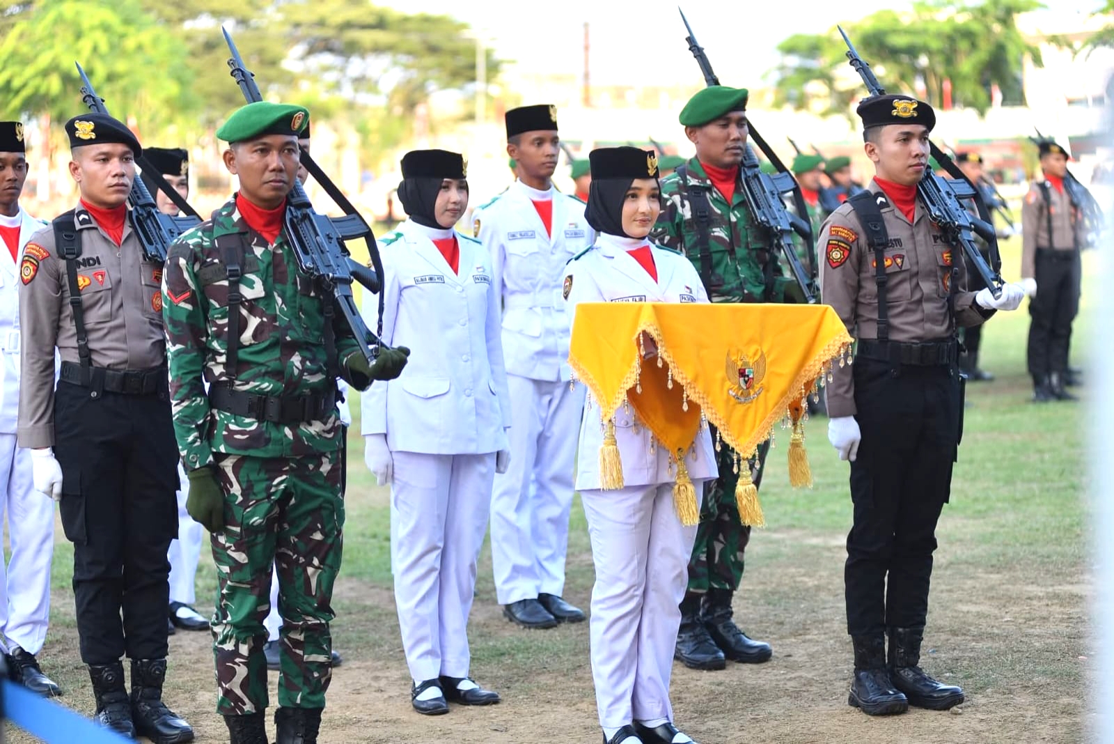 Suasana tampak begitu khidmat sekaligus meriah. Antusiasme masyarakat yang hadir dengan sukarela mencerminkan semangat kebersamaan dalam memperingati momentum bersejarah kemerdekaan bangsa.