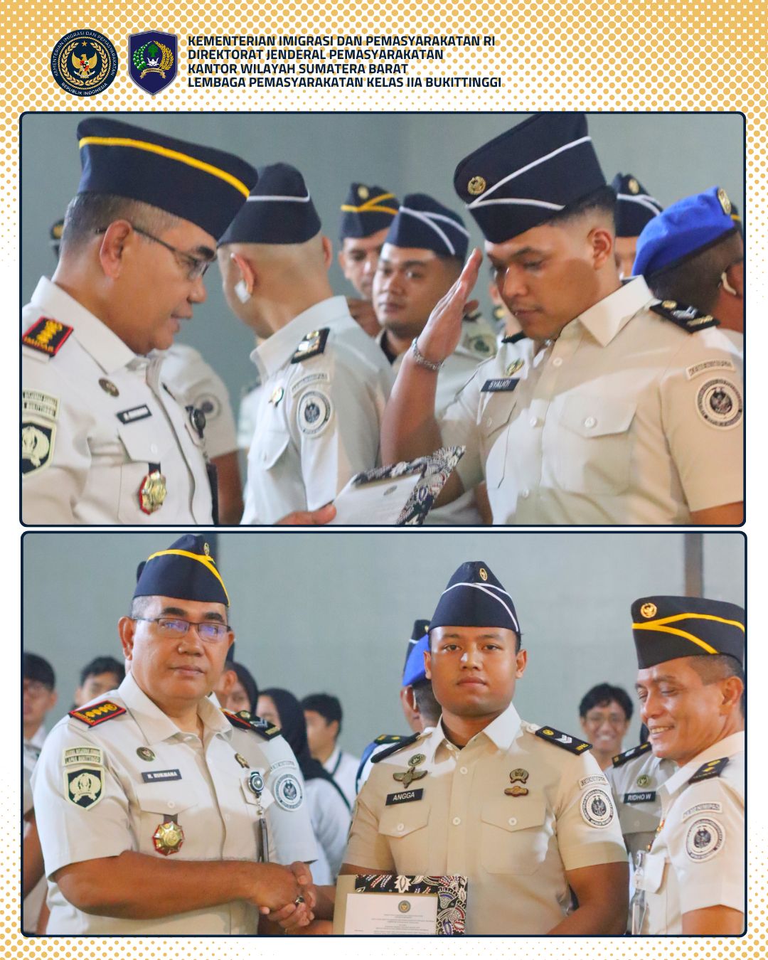 Upacara penyematan pangkat berlangsung dengan tertib dan penuh rasa kebanggaan. Kegiatan ini sekaligus menjadi bentuk apresiasi atas pengabdian pegawai serta komitmen Lapas Kelas IIA Bukittinggi dalam mendorong peningkatan kualitas sumber daya manusia di lingkungan pemasyarakatan. **El**
