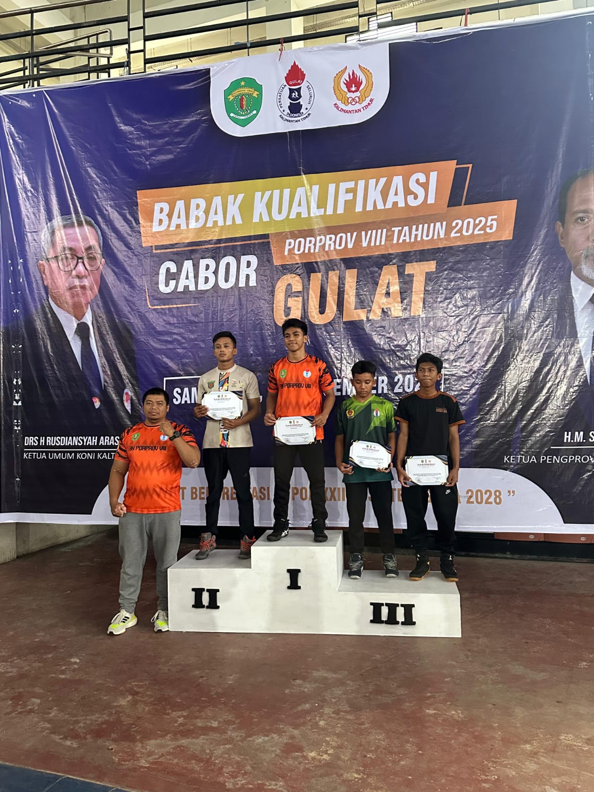 Di cabang olahraga gulat, Bripda Fauzil Surya Salputra dari Batalyon B Pelopor menyumbang medali perak pada kelas 53 kg gaya Greco Roman di BK Porprov Kaltim 2025. Pertandingan berlangsung selama tiga hari di GOR Gulat Loa Bakung, Kecamatan Sungai Kunjang, Samarinda.