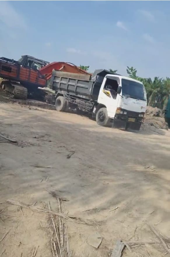 Sebuah insiden terlihat jelas dua alat ekskavator merek Hitachi sedang melakukan penggalian tanah bercampur pasir di sebuah perladangan perkebunan kelapa sawit milik warga setempat,dimana kegiatan aktivitas pertambangan tersebut diduga jadi bentuk usaha penjualan tanah bercampur pasir yang dilakukan oleh oknum pengelola,sehingga menimbulkan kendaraan roda enam seperti mobil dumptruk berdatangan dan pada antri untuk jasa pengangkutan.