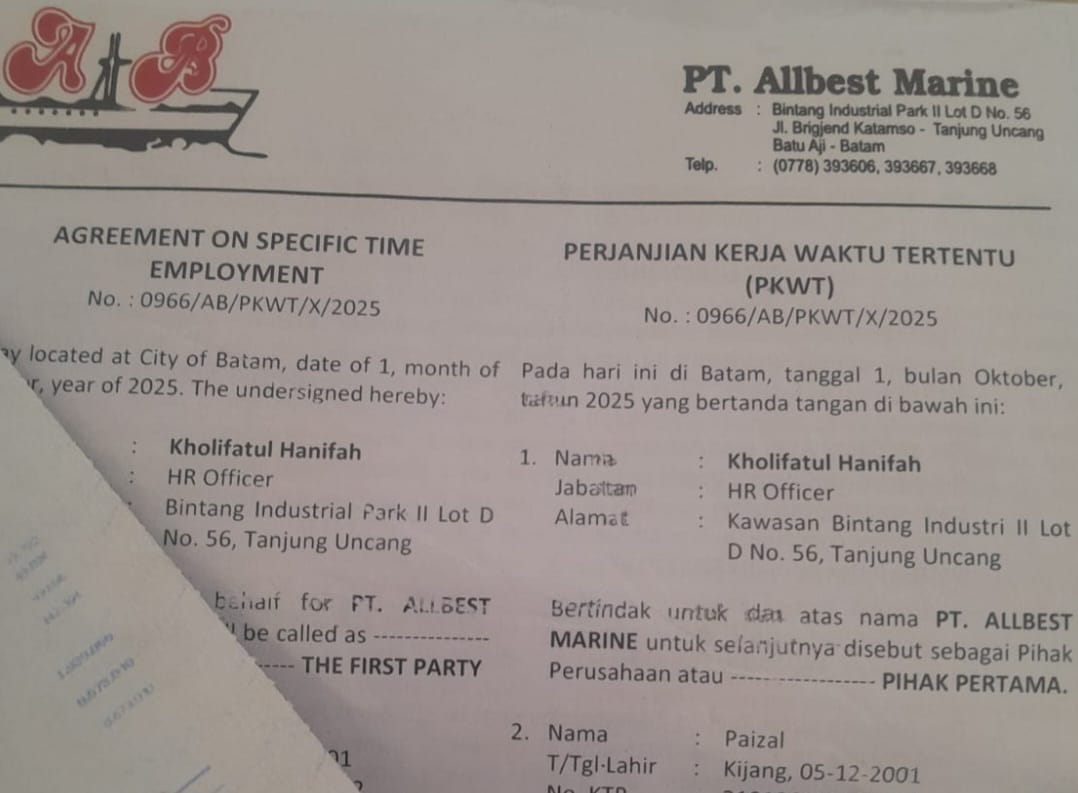 Mabesnews.com. Batam — Pemutusan hubungan kerja (PHK) sepihak terhadap Paizal di PT Allbets Marine kini berubah menjadi sorotan publik yang semakin keras. Sejumlah indikasi intimidasi, pemeriksaan tanpa prosedur, serta pengabaian prinsip keadilan membuat para pemerhati hubungan industrial mempertanyakan integritas tata kelola perusahaan tersebut.