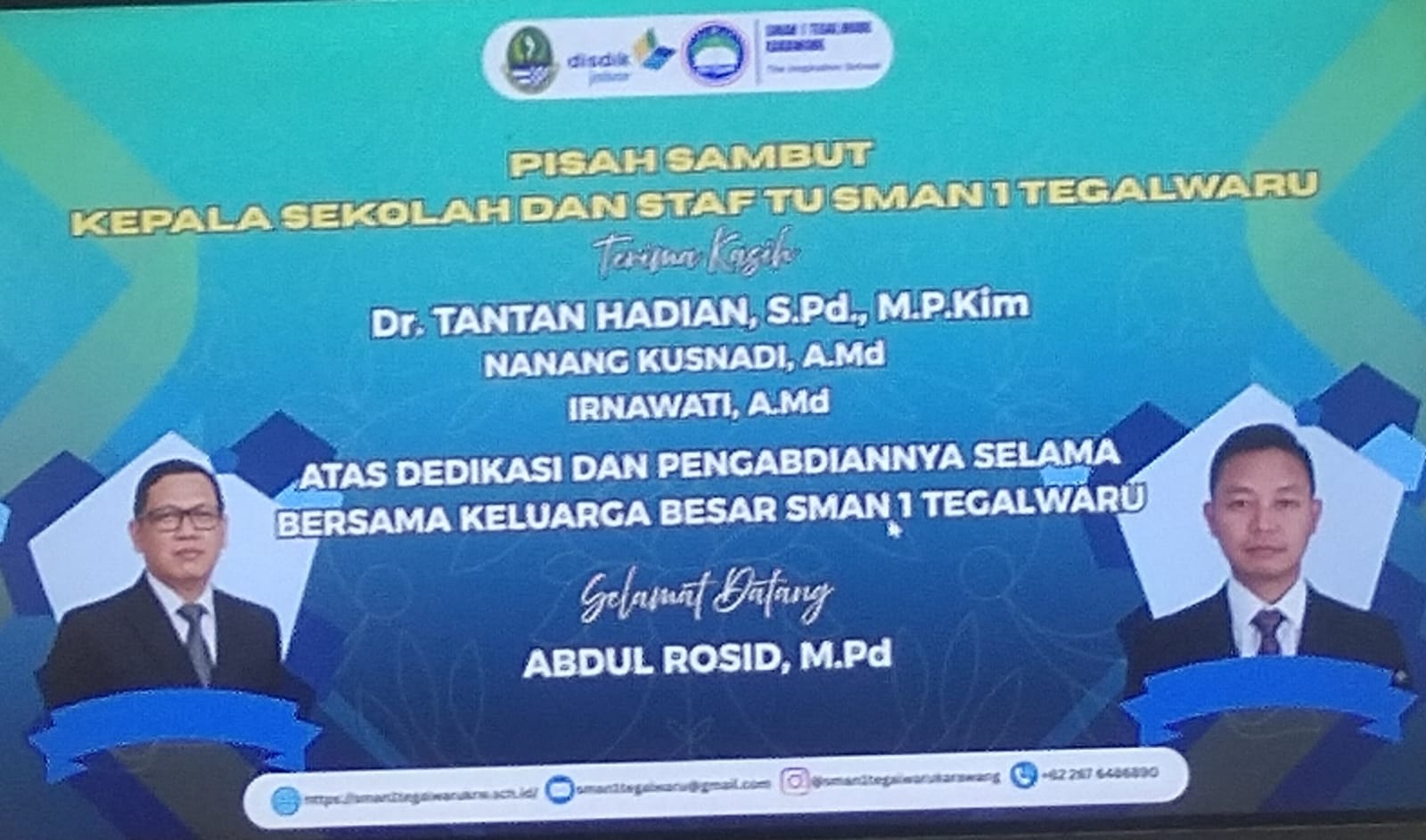 Mabesnews.com | Karawang, Kamis 13 Nop 2025 – Acaraserah terima jabatan – Sertijab  kepala Sekolah SMAN 1 Tegalwaru karawang menggelar acara pisah sambut, Dr Tantan Hadian S.Pd.M.P.Kim, sebagai Kepala Sekolah lama yang akan berpindah tugas ke daerahnya kabupaten Sukabumi.