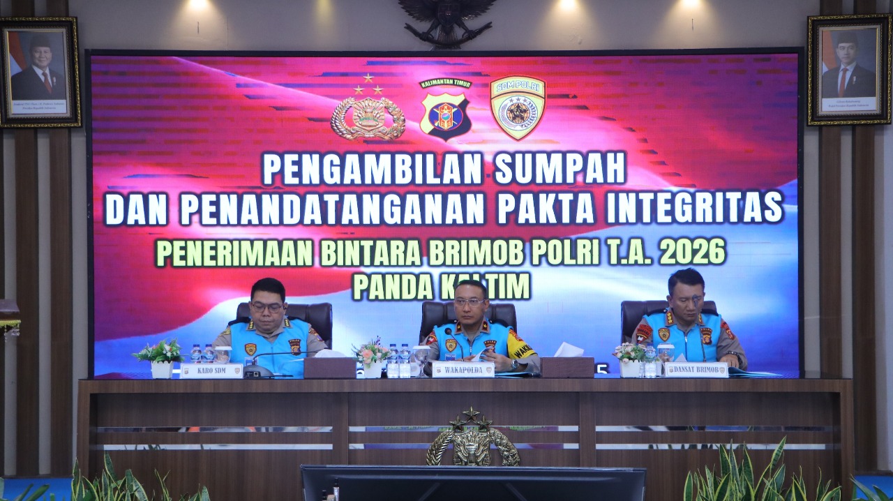 Mabesnews.com,-Polda Kalimantan Timur menggelar kegiatan Pengambilan Sumpah dan Penandatanganan Pakta Integritas bagi peserta Penerimaan Bintara Brimob Tahun Anggaran 2026. Kegiatan ini berlangsung pada Rabu, 19 November 2025, bertempat di Gedung Mahakam Polda Kaltim, sebagai komitmen mewujudkan proses rekrutmen Polri yang bersih, transparan, dan berintegritas.