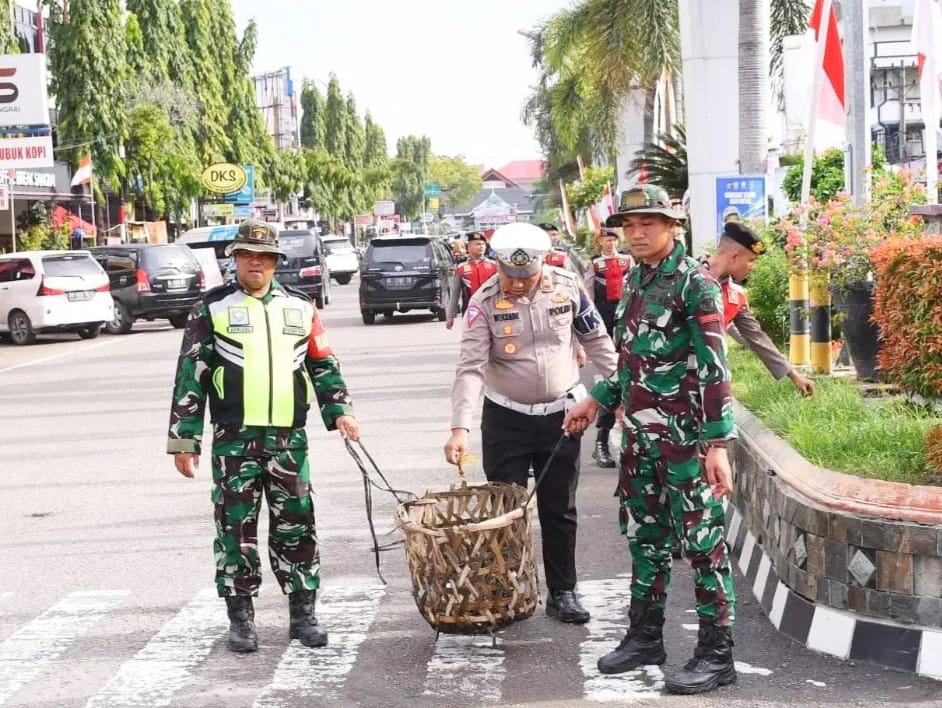 Mabesnews.com l Bireuen – Polres Bireuen Gelar Gotong Royong bersama TNI dari Kodim 0111/Bireuen, Bataliyon RK 113 JS, Satpol PP/WH dan Mahasiswa di Pusat Kota Juang, Selasa 3 September 2024
