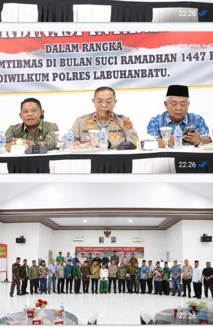 MabesNews.com, Labuhanbatu– Sumut Polres Labuhanbatu melaksanakan Rapat Koordinasi Cipta Kondisi Harkamtibmas menjelang dan selama Bulan Suci Ramadhan 1447 H Tahun 2026 di wilayah hukum Polres Labuhanbatu. Kegiatan tersebut digelar di Aula Yan Piter Polres Labuhanbatu, Jalan MH. Thamrin, Rantauprapat, Kabupaten Labuhanbatu, Senin, 16 Februari 2026.