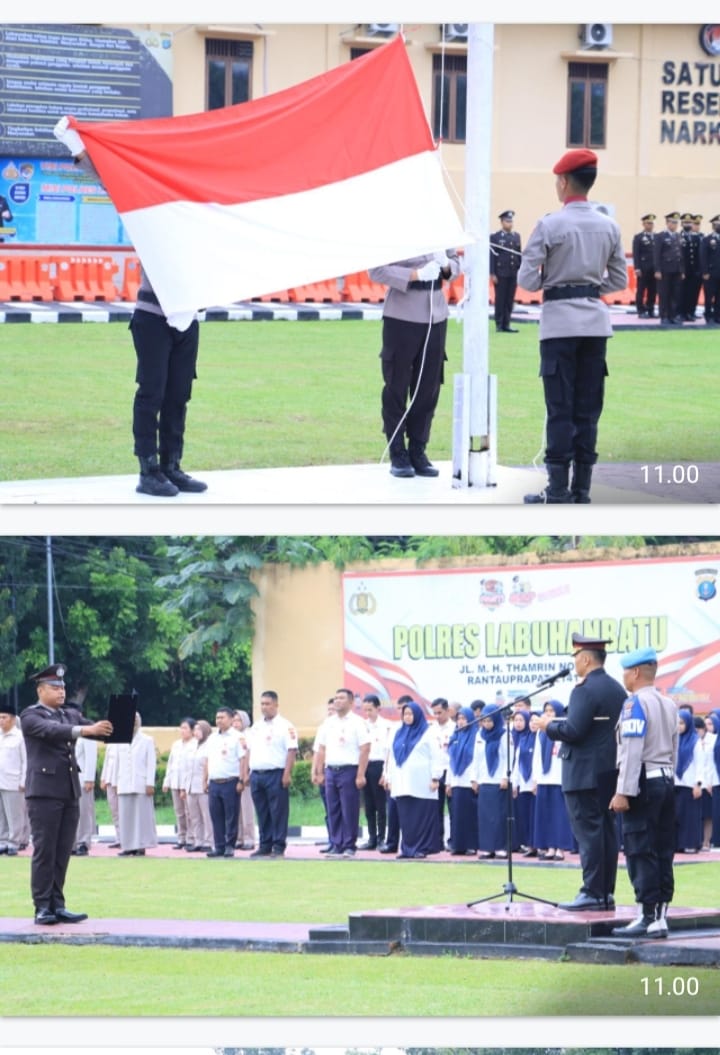 Upacara tersebut dipimpin langsung oleh Kapolres Labuhanbatu, AKBP Choky Sentosa Meliala, S.I.K., S.H., M.H., selaku Inspektur Upacara. Bertindak sebagai Perwira Upacara yaitu AKP Bambang Sugiarto (Kasubbag Bin Ops), dan IPDA M. Husni Nasution (KBO Lantas) sebagai Komandan Upacara.