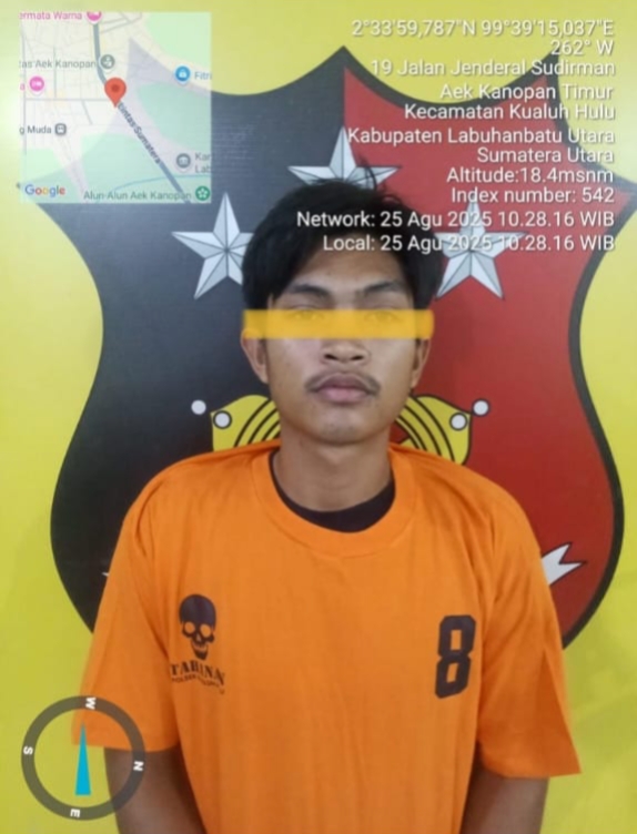 Team mendapatkan informasi,tersangka yang melakukan penipuan dan Penggelapan tersebut, langsung melakukan pengejaran terhadap tersangka dengan melakukan penggeledahan,di rumah kontrakannya berada didaerah Sukamaju Kec.Aek Natas Kab.Labuhanbatu Utara, Namun tersangka tidak ditemukan, selanjutnya team pasang jaringan, guna mencari keberadaan tersangka, Dan pada hari Minggu tanggal 24 Agustus 2025.