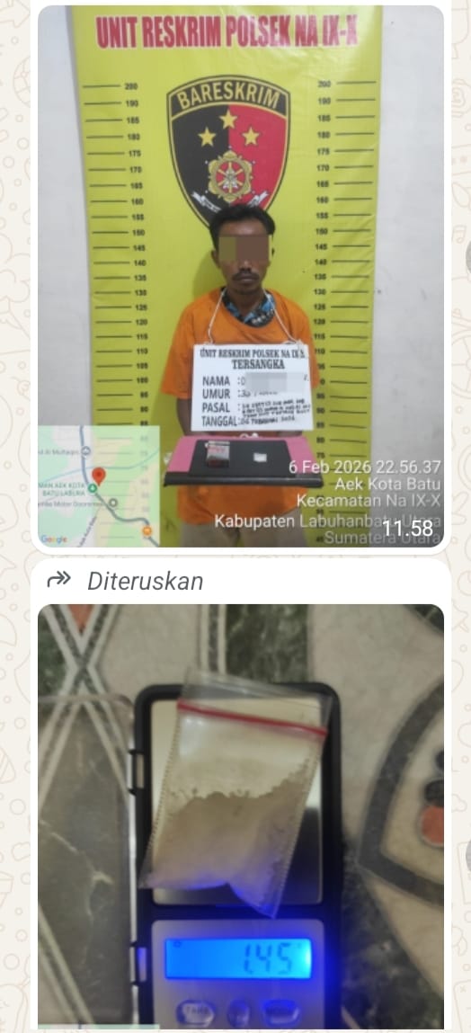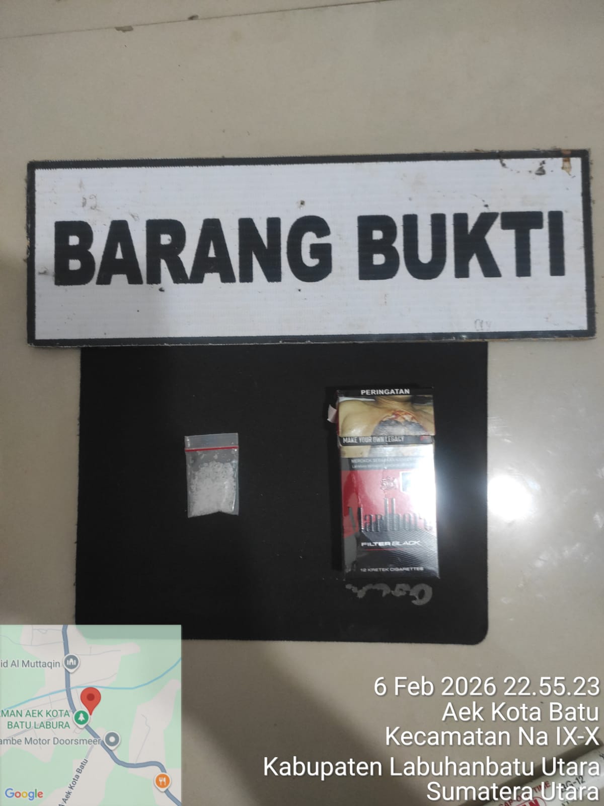 MabesNews.com, Labuhanbatu Utara Labura, Sumut – Polsek Na IX-X Polres Labuhanbatu berhasil mengungkap kasus penyalahgunaan narkotika jenis sabu di Lingkungan V Aek Tampang, Kelurahan Aek Kota Batu, Kecamatan Na IX-X, pada Jumat malam, 06 Februari 2026.