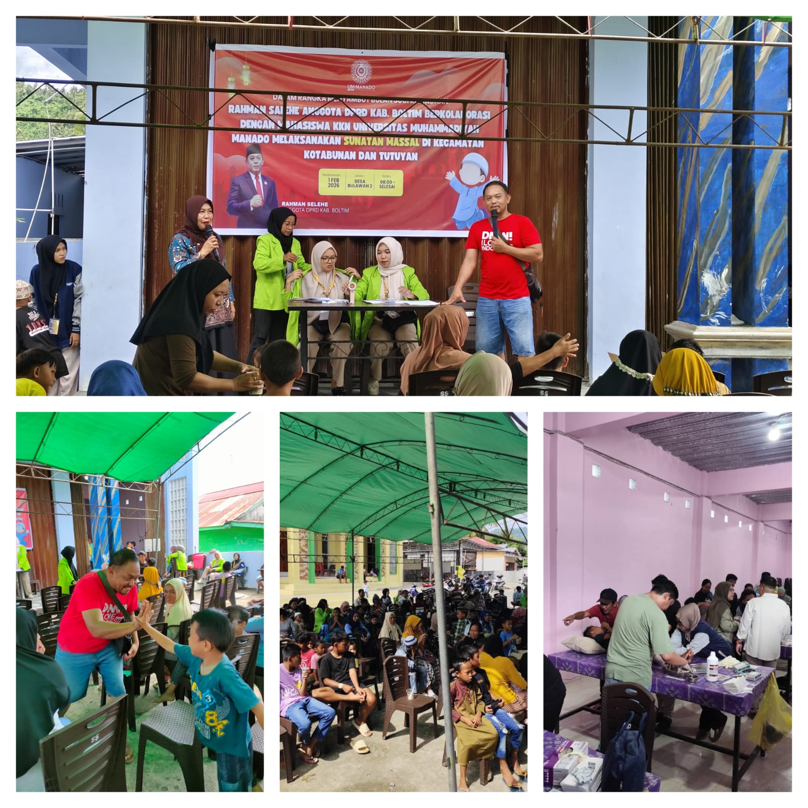 MabesNews.com, Boltim,Sulut- Dalam rangka menyambut datangnya bulan suci Ramadan 1447 Hijriah, Anggota Dewan Perwakilan Rakyat Daerah (DPRD) Kabupaten Bolaang Mongondow Timur (Boltim), Provinsi Sulawesi Utara (Sulut) Partai Demokrasi Indonesia Perjuangan (PDI-P) Rahman Salehe, berkolaborasi dengan Mahasiswa Kuliah Kerja Nyata (KKN) Universitas Muhammadiyah Manado (UMMA) melaksanakan kegiatan Sunatan Massal bagi masyarakat.