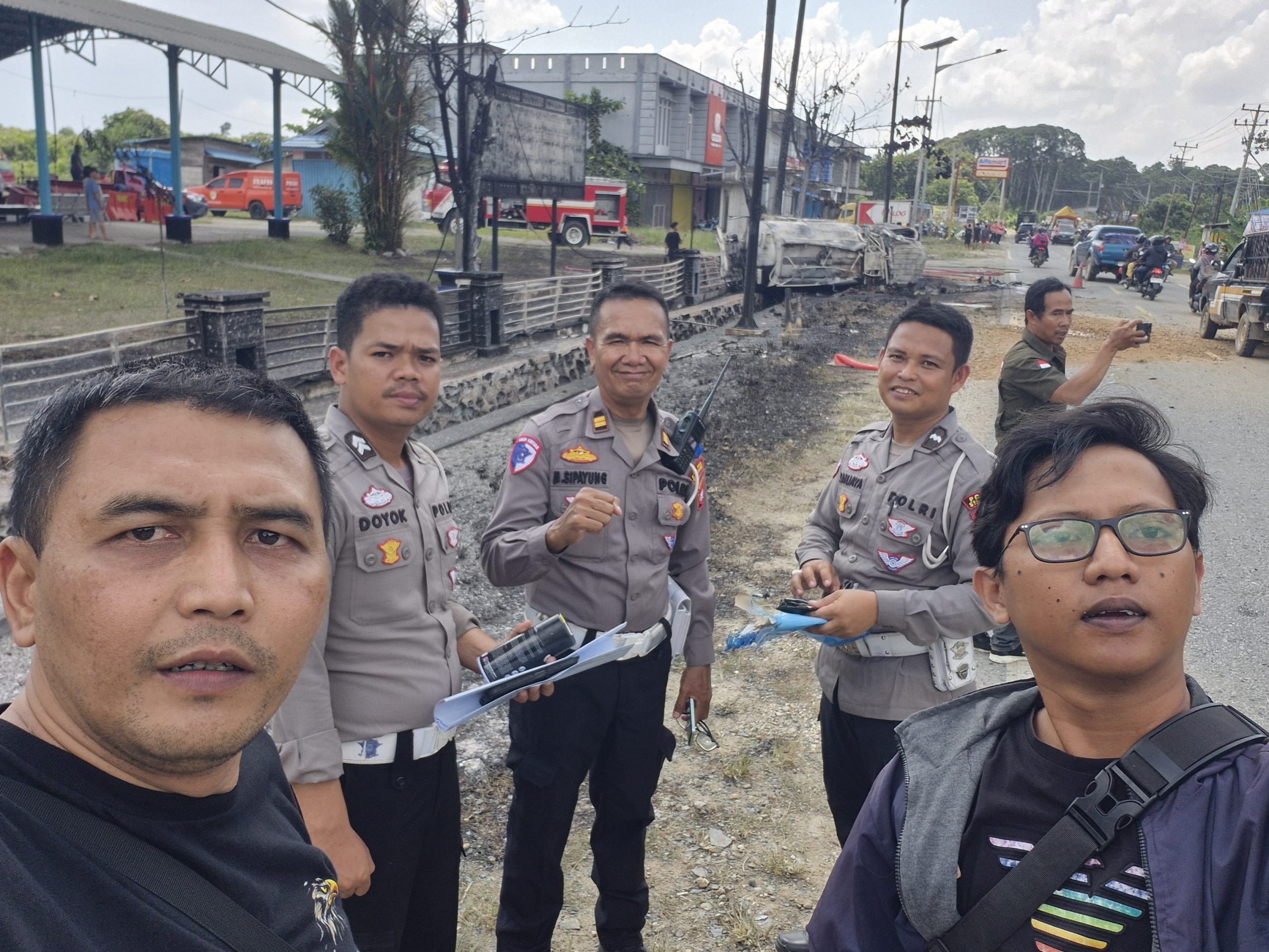 Anggota satuan Brimob batalyon C pelopor pada saat itu sedang melakukan patroli dan mengetahui jelas kejadian laka lantas yang menyebabkan mobil tengki minyak solar meledak