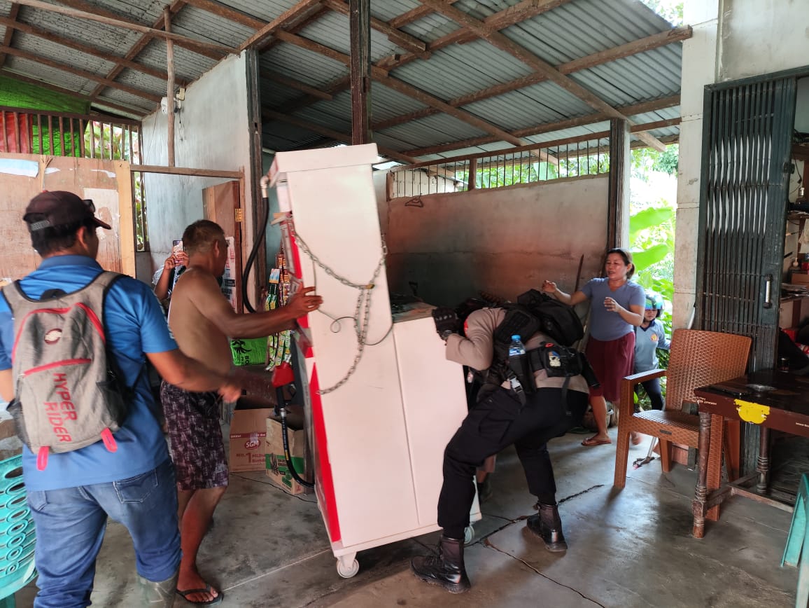Anggota Brimob sempat melakukan evakuasi terhadap supir tangki yang mengalami laka lantas