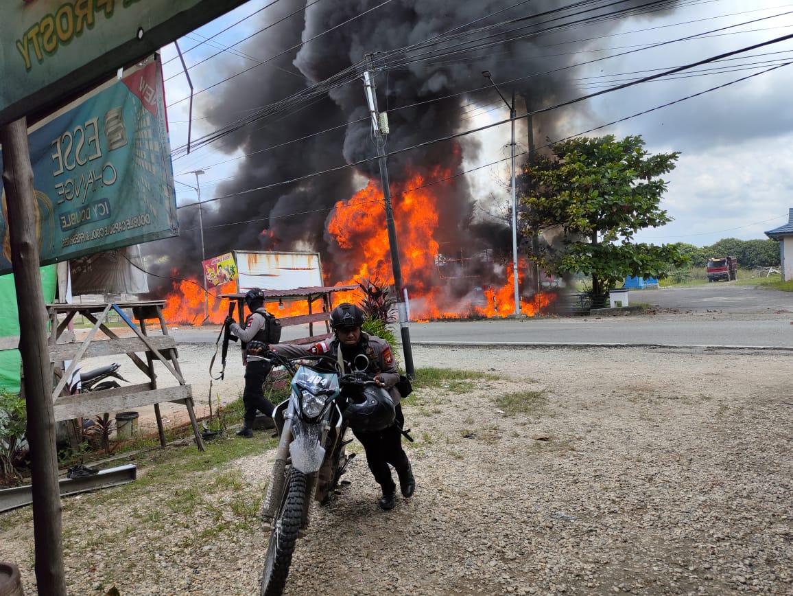Respon Cepat Dalam Membantu Masyarakat Korban Laka Mobil tangki Yang Terbakar Anggota Satuan Brimob batalyon C Pelopor kab.Sintang Kalbar