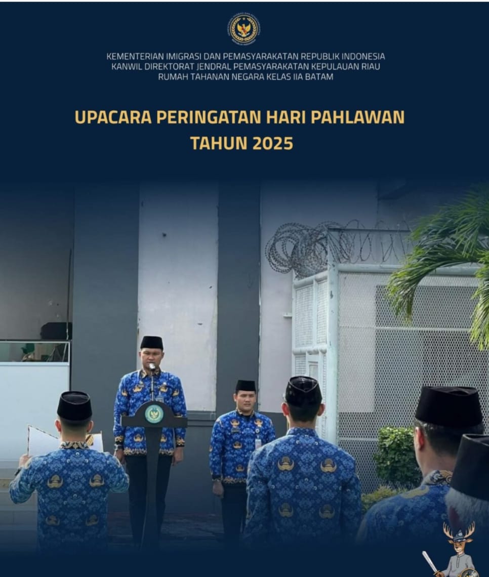 Bertindak sebagai Inspektur Upacara yakni Kepala Rutan Kelas IIA Batam, yang dalam amanatnya menyampaikan bahwa momentum Hari Pahlawan harus dijadikan pengingat bagi seluruh insan pengayoman untuk terus meneladani semangat juang para pahlawan dalam menjalankan tugas dan pengabdian kepada bangsa dan negara.