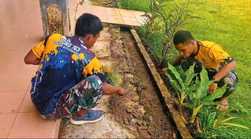 Kegiatan ini dilakukan secara gotong royong bersama warga setempat, dengan membersihkan halaman, serta merapikan lingkungan sekitar rumah ibadah. Aksi ini merupakan bagian dari upaya Satgas dalam mempererat hubungan dengan masyarakat dan mendukung kegiatan keagamaan di wilayah binaan.