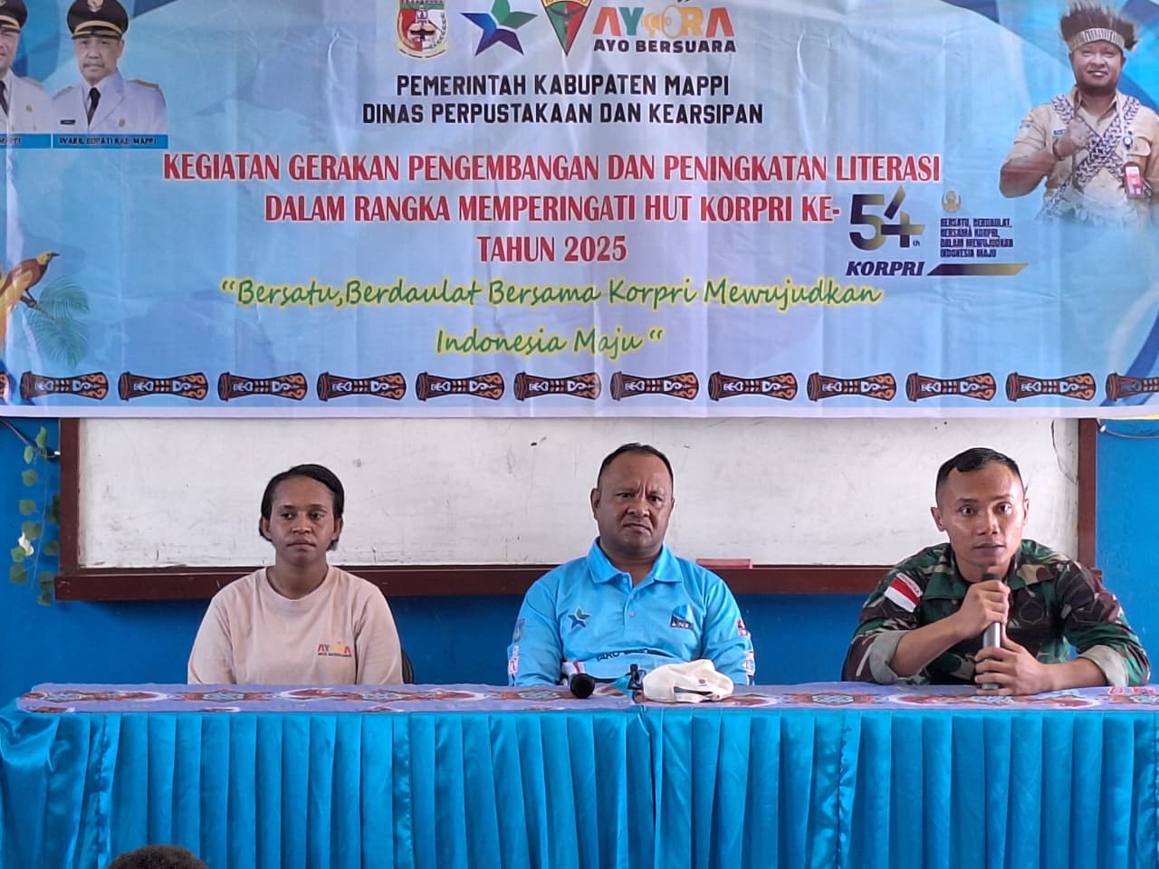 Mabesnews.com,-Dagimon, Mappi – Satuan Tugas (Satgas) Batalyon Infanteri (Yonif) 123/Rajawali Pos Kotis bekerja sama dengan Dinas Perpustakaan menggelar kegiatan gerakan pengembangan dan peningkatan literasi di SD Inpres Dagimon, Kampung Dagimon, Distrik Obaa, Kabupaten Mappi, Papua Selatan. Kegiatan ini bertujuan untuk meningkatkan minat baca dan kemampuan literasi siswa-siswi di wilayah tersebut. Selasa,(02/12/2025)