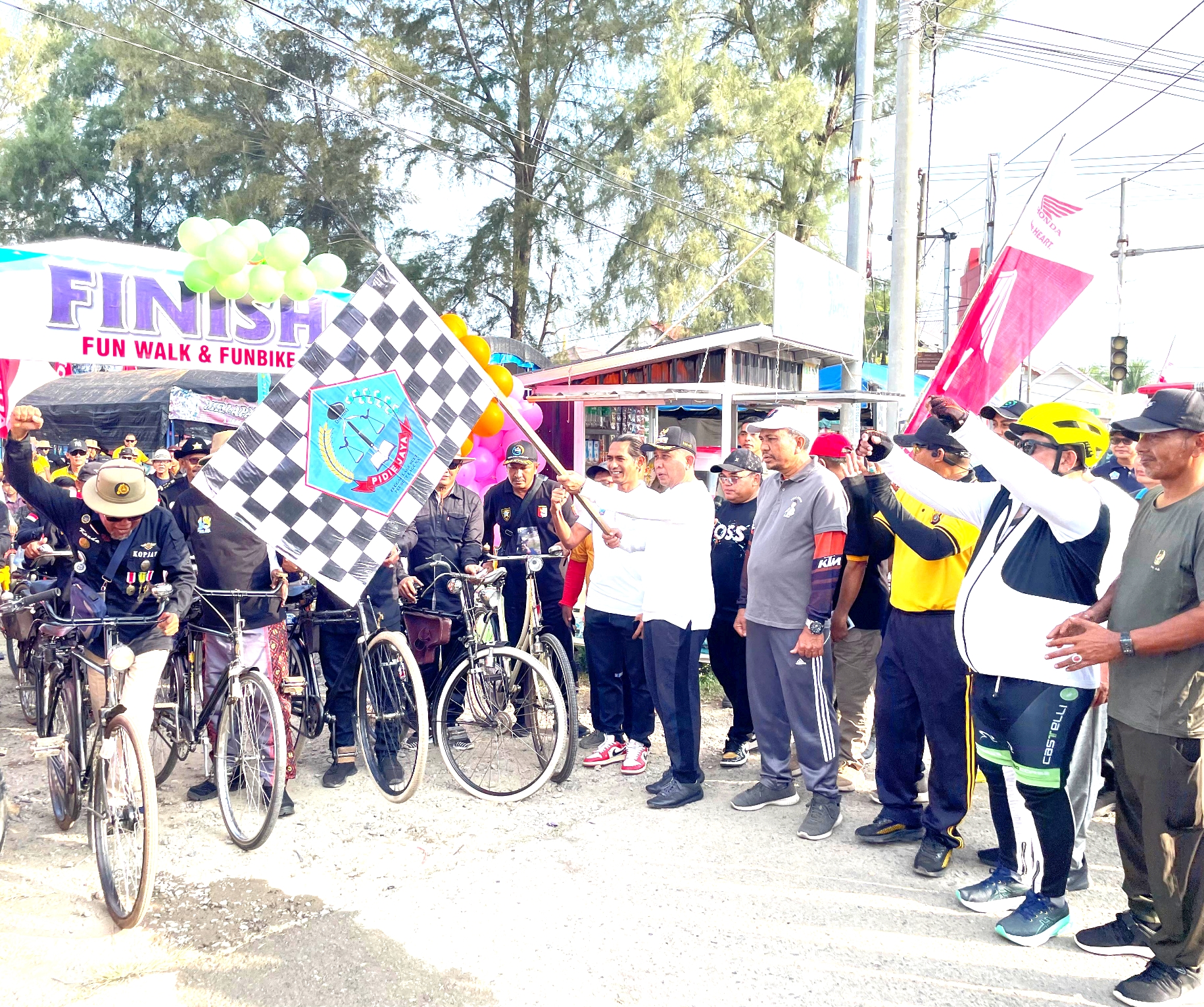 Mabesnews.com. Pemerintah Kabupaten Pidie Jaya, bersama jajaran Kepolisian menunjukkan kekompakan dan kedekatan dengan masyarakat dalam memeriahkan Hari Ulang Tahun (HUT) ke-18 Kabupaten Pidie Jaya. Bupati H. Sibral Malasyi, M.A., S.Sos., M.E., didampingi Wakil Bupati Hasan Basri, S.T., M.M., dan Wakapolres Kompol Iswahyudi, S.H., CPHR., CBA., turut ambil bagian dalam kegiatan sepeda santai yang berlangsung meriah pada Minggu pagi, 15 Juni 2025.