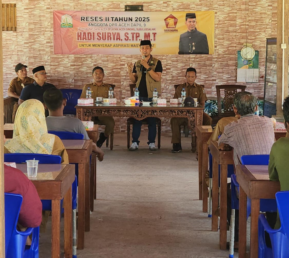 Dalam sambutannya, Hadi Surya menyampaikan apresiasi atas keterbukaan masyarakat dan sambutan hangat dari para tokoh lokal. Ia menegaskan bahwa seluruh aspirasi akan diperjuangkan melalui jalur kelembagaan di DPRA, terutama melalui Komisi III mitra kerja Bappeda Provinsi Aceh.
