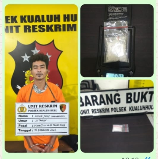 MabesNews.com, Labuhanbatu Utara Labura, Sumut – Pada Hari Senin tanggal 23 Februari 2026 sekira pukul.09.00 Wib, tim Opsnal Polsek Kualuh Hulu Polres Labuhanbatu mendapat informasi dari masyarakat mengenai adanya tersangka yang membawa narkotika jenis sabu-sabu di panjang bidang III kelurahan gunting saga Kec. Kualuh selatan Kab. Labura.