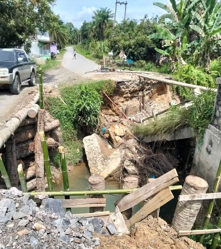 Namun nahas,sepeda motor yang dikendarainya terperosok ke bagian jembatan yang ambruk.Padahal,pihak Pemerintah Kecamatan Marbau sebelumnya telah memasang jembatan darurat di samping jembatan yang rusak tersebut.